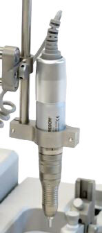 The portable micromotor with pocket/pouch-size control unit has built-in lithium-ion rechargeable battery for the ultimate in portability. The control unit features a digital RPM display at the top that makes it easy to monitor speed as you work. The dial on the front adjusts speed from 0-30,000 RPM.