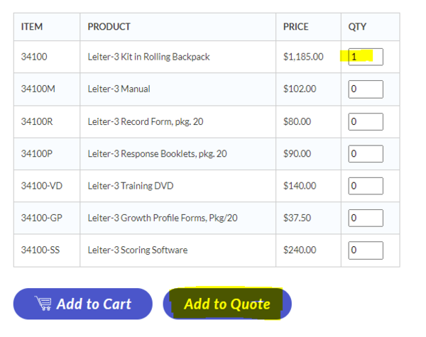 1. After identifying needed products, select desired quantity and click "Add to Quote."